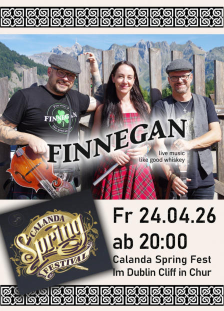 Komm mit uns nach Chur und erlebe Finnegan im Pub Dublin Cliff! Beste Stimmung und Musik vom Feinsten! Slainte!Samstag, 9. Mai 2026 ab 20:00